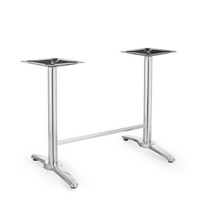 Dining table base with polished stainless steel finish for rectangular tops.
